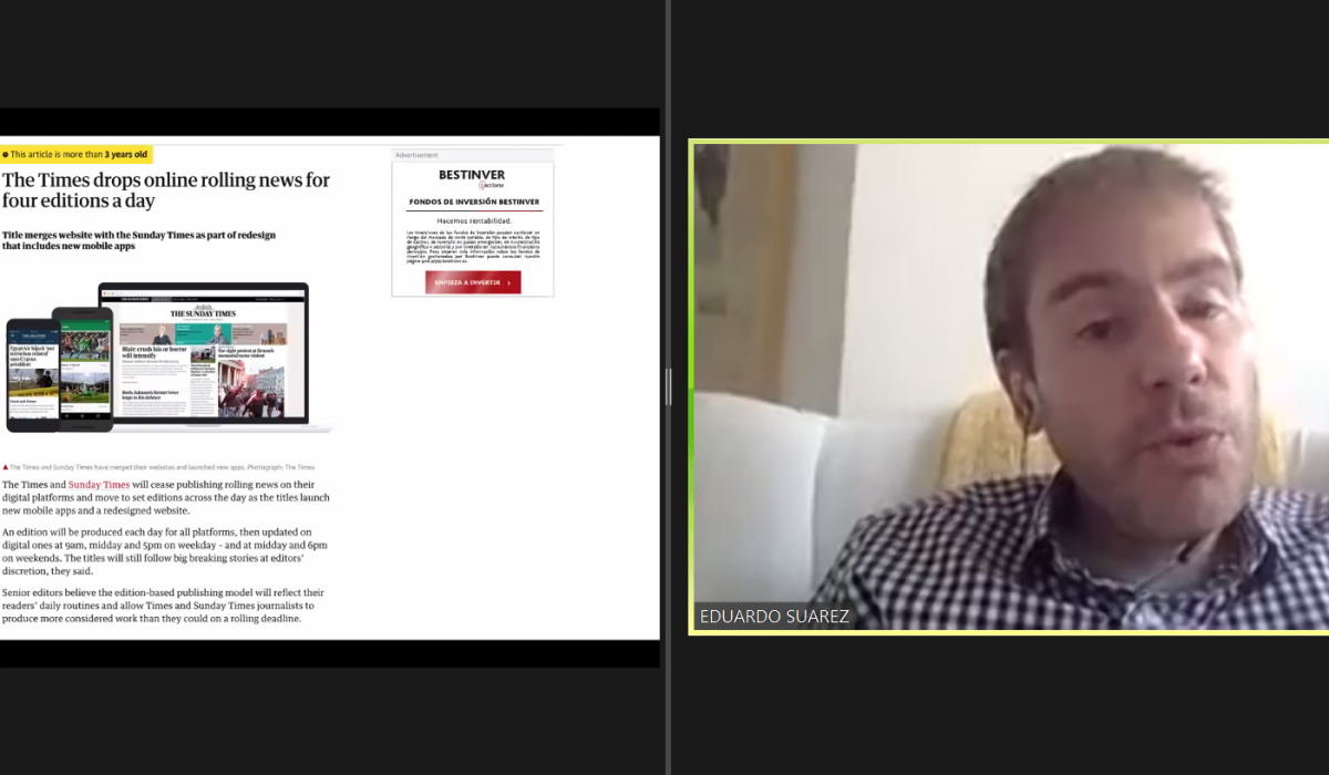 Eduardo Suárez ha analizado este caso desde distintos prismas, presentando diferentes proyectos que en distintos países han optado por la diversificación de formatos y especialización de contenidos de calidad para llegar a sus usuarios.