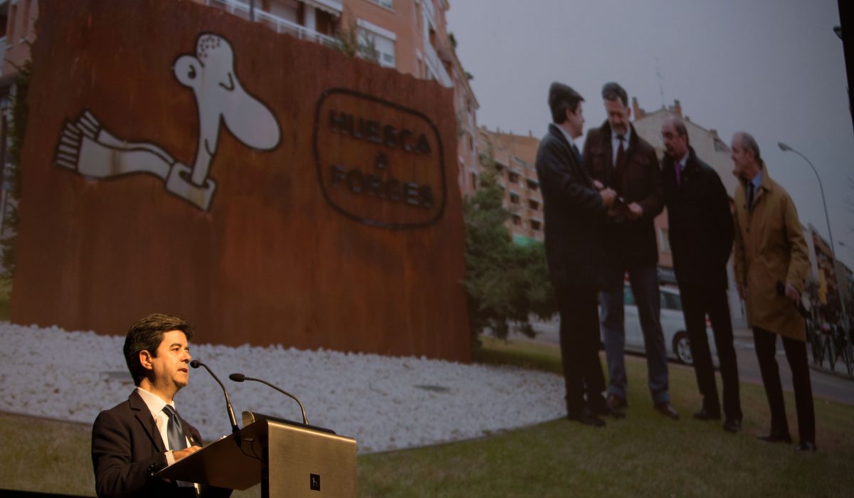 El homenaje ha comenzado antes de la inauguración oficial, con un sencillo acto en el que el presidente de Aragón, Javier Lambán; el alcalde de Huesca, Luis Felipe, y el presidente de la Asociación de Periodistas de Aragón, José Luis Trasobares, han entregado en la rotonda dedicada al humorista en Huesca una réplica de la escultura que la decora a su sobrino, el periodista Pedro de Alzaga Fraguas, para hacerla llegar a su mujer e hijos.
