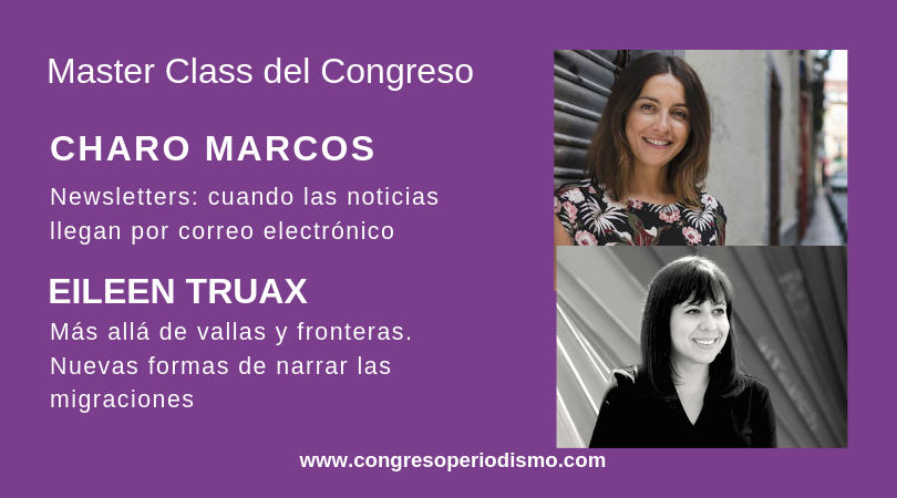 Para poder asistir a cualquiera de estas sesiones paralelas al Congreso es necesario estar inscrito en el Congreso. E< nlace al formulario de inscripción: https://goo.gl/forms/6WGrTQ7FGR5zyWFn2 Las periodistas Eileen Truax y Charo Marcos serán las...
