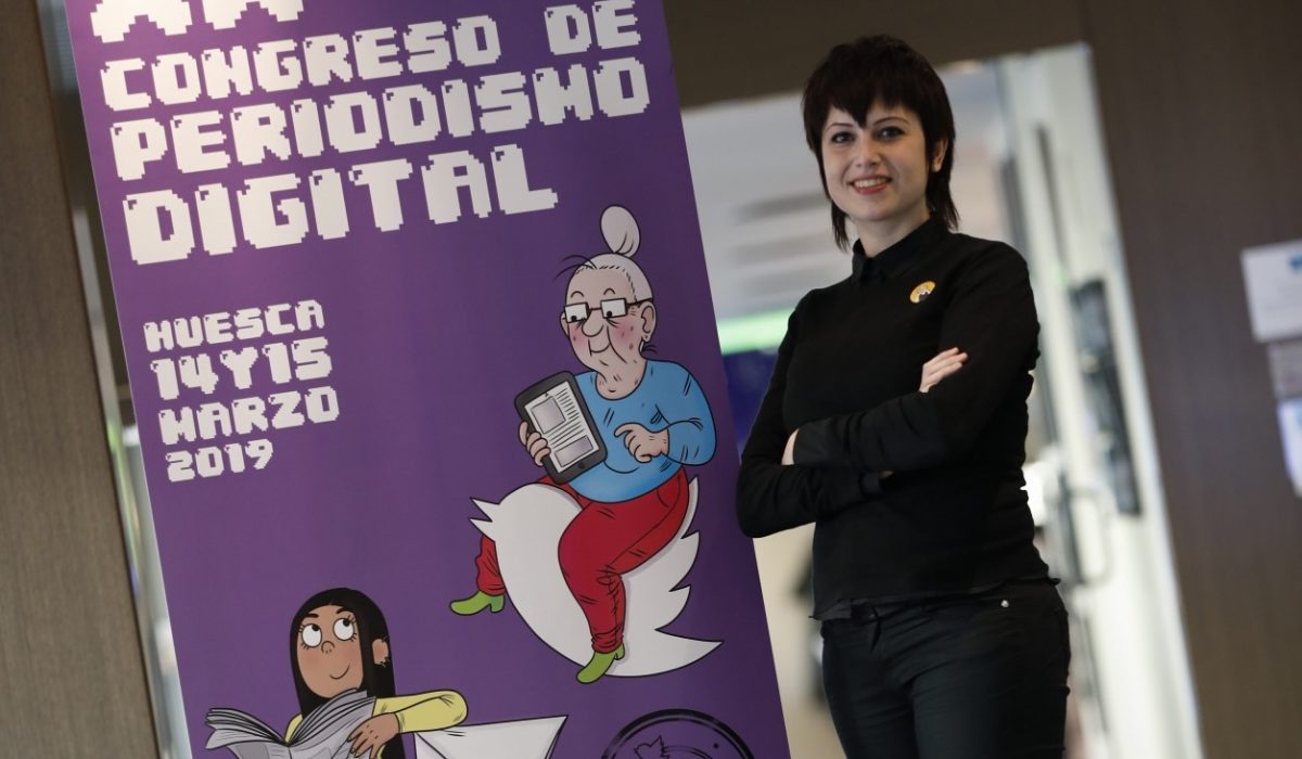 La autora del cartel del XX Congreso de Periodismo Digital de Huesca, Mamen Moreu, ha estado en el arranque de la cita, donde ha recordado que la imagen de este año rinde homenaje, una vez más, a la mujer, que es, verdaderamente, la única protagonista de todas sus obras.