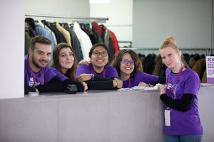 Nos han ofrecido la primera de las sonrisas a la entrada del Congreso. Llevan una camiseta morada serigrafiada con el cartel de esta XX edición. Seguro que nos han ayudado múltiples veces estos días; con las acreditaciones, en el guardarropa o en el auditorio. Ellas son las azafatas, en las que incluimos a tres chicos este año, y son estudiantes del Grado de Alojamientos Turísticos en el CPIFP San Lorenzo, en Huesca. Para Iris y Mihaela esta es la primera vez que participan en el congreso. Les preguntamos qué les parece este mundo y sonrientes responden que están sorprendidas por lo “amables, educados y abiertos” que somos los profesionales de la comunicación. “No sabía que había tanta gente trabajando detrás de las noticias” añade Mihaela. Una pieza clave de este equipo es Mª Ángeles, su profesora. Una experta en protocolo que da la enhorabuena al congreso por la organización “sin imprevistos”, algo “sorprendente” dice, dado el importante volumen de trabajo que se lleva a cabo en dos jornadas. Mº Ángeles se muestra sorprendida por la relación entre los ponentes y los asistentes del congreso “no hay nadie superior a otra persona, hay una cordialidad muy sana entre todos y me ha parecido una experiencia tan sorprendente como agradable” explica.