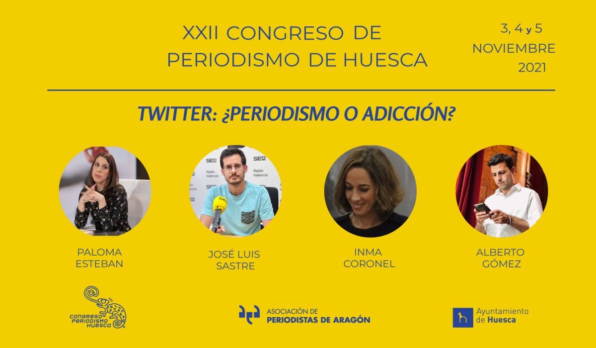 ‘Twitter: ¿Periodismo o Adicción?’ es el título de una de las mesas redondas de la jornada inaugural del XXII Congreso de Periodismo de Huesca, que se celebra del 3 al 5 de noviembre. Esta cita de referencia periodística regresa al Palacio de Congresos de Huesca tras la edición online del año pasado, y lo hace con un nuevo formato: tres sesiones de ponencias en horario de tarde y dos jornadas matinales de talleres. Alrededor de 30 ponentes intervendrán en las diferentes ponencias que podrán seguirse también vía online.