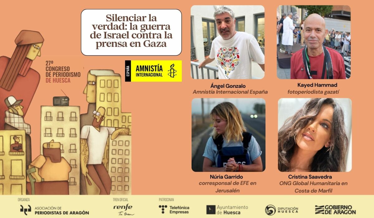 La ofensiva israelí en Gaza no solo ha golpeado a la población civil, sino también a quienes tratan de contar lo que ocurre. El Congreso de Periodismo de Huesca acogerá el jueves 12 de marzo, a las 18.45 horas, la mesa redonda ‘Silenciar la verdad: la guerra de Israel contra la prensa en Gaza’, organizada por Amnistía Internacional en Aragón, para analizar las dificultades, riesgos y consecuencias de informar desde la Franja.
