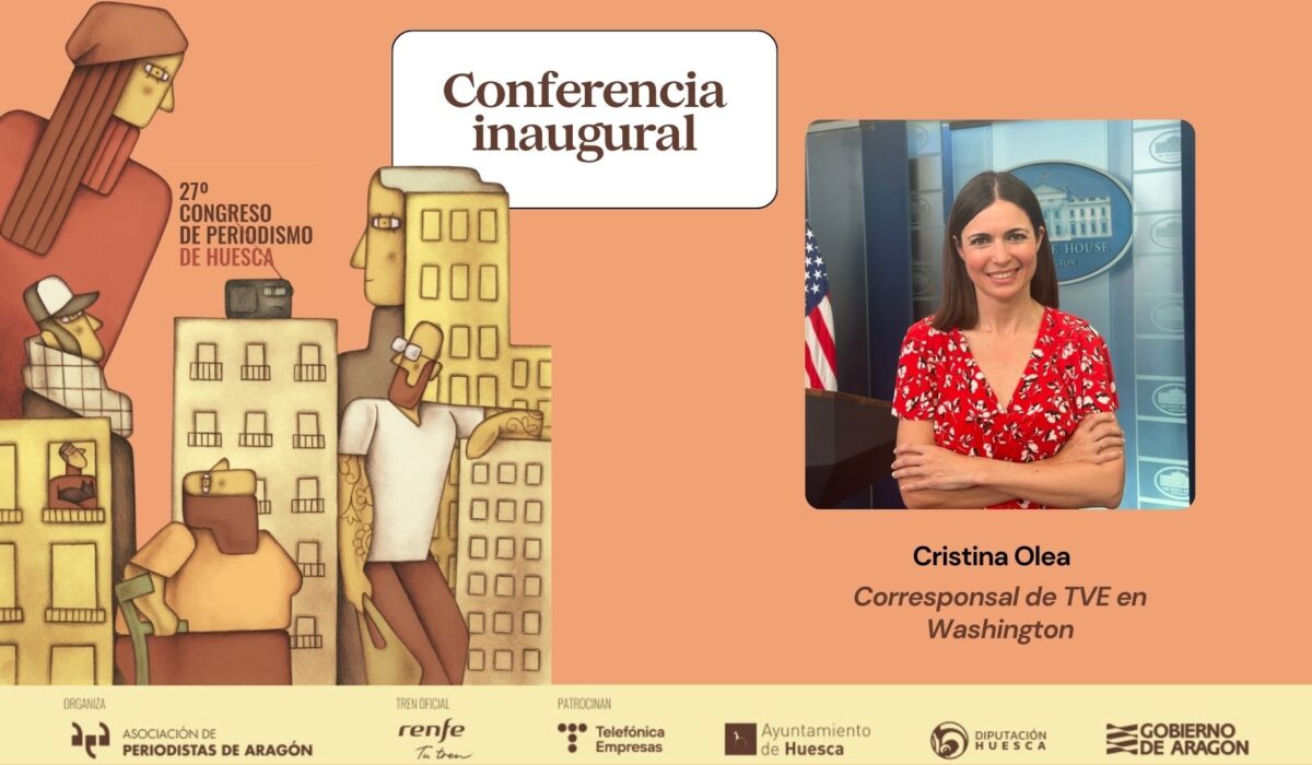 El periodismo mirará este año tanto hacia fuera como hacia dentro en el Congreso de Periodismo de Huesca, que celebrará su XXVII edición los días 12 y 13 de marzo en el Palacio de Congresos de Huesca. La conferencia inaugural, a cargo de la corresponsal de TVE en Washington Cristina Olea, y la mesa redonda “Redacciones al límite: cuidar al periodista, cuidar el periodismo” se sitúan como dos de ejes de una edición que combinará análisis internacional y reflexión sobre las condiciones laborales en los medios.