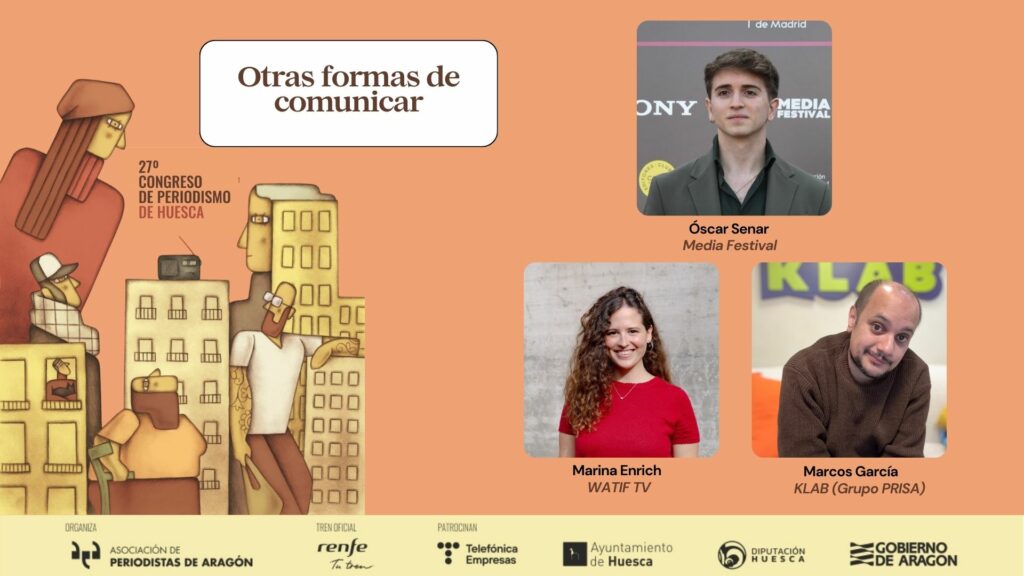 A las 12.30 horas también se celebrará la conversación ‘Otras formas de comunicar’, un debate sobre nuevos formatos y narrativas digitales que moderará José Carlos Gil, parte de la directiva de Media Festival y actualmente en el programa ‘A vivir Madrid’ de la Cadena SER. En este espacio, intervendrán Marcos García Merino, redactor jefe de contenidos de KLAB (Grupo PRISA), y Marina Enrich, copresentadora de WATIF TV y especialista en comunicación digital.